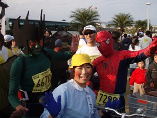 いぶすき菜の花マラソン! 楽しかった 本当に楽しかった! 一年に一度のお祭りのような本当ににぎやかな大会です 詳しくはhttp://indoor.zashiki.com/run/ibusuki2008/ibusuki2008.html にアップしました なんてったって、皆楽しい 今回はコスプレは幼稚園児でいきました スパちゃん、しろちゃんも頑張ってました 運よく会えた人、会えなかったひともいました そして最後にランザの店長に引っ張ってもらいました いろんな人にあえてすごくうれしくて、楽しくて、まだ興奮状態です あー楽しかった …余談ですが 帰りの運転はすべて私がしました(500キロ) |