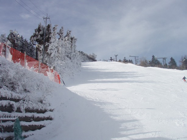 うちから車で1時間弱のところにある 石鎚山スキー場 山のてっぺん?にあります ロープウェーで上ったところがスキー場 天気は最高、雪も最高でした キラキラしててきれい …しかし私は初心者 スキー板のはき方すらわからん はいたら今度は脱ぎ方がわからん ひとりでできるか?!と思ってはいたら、前後ろ逆だったりして、、、、、 ああたいへん 最初は初心者コースをいく 初心者コースでも直滑降するとかなりのスピード ギャーギャー騒ぎながら滑る そのうちに、一緒にいったひとたちから「上いくで」と 中級コースに連れて行かれました ここは、あまりの恐ろしさに、写真すらとる気力もないくらいへたってしまいました そんでもって、下に下りるまで40分くらいかかったし、、 だって、目の前がすごく絶景 絶景ってのは、やまのてっぺんからはるか下界がよくみえる、、、、 その方向へ滑っていくんだもん、、、、、怖い、、、 だいたいまだ止まり方もわからんし、、、、 で、真横にすべっちゃあ、コケてなんとか下までおりて、そのまままた初心者コースで練習をしたのでした、、、、 でも、楽しかった またいきたいなあ